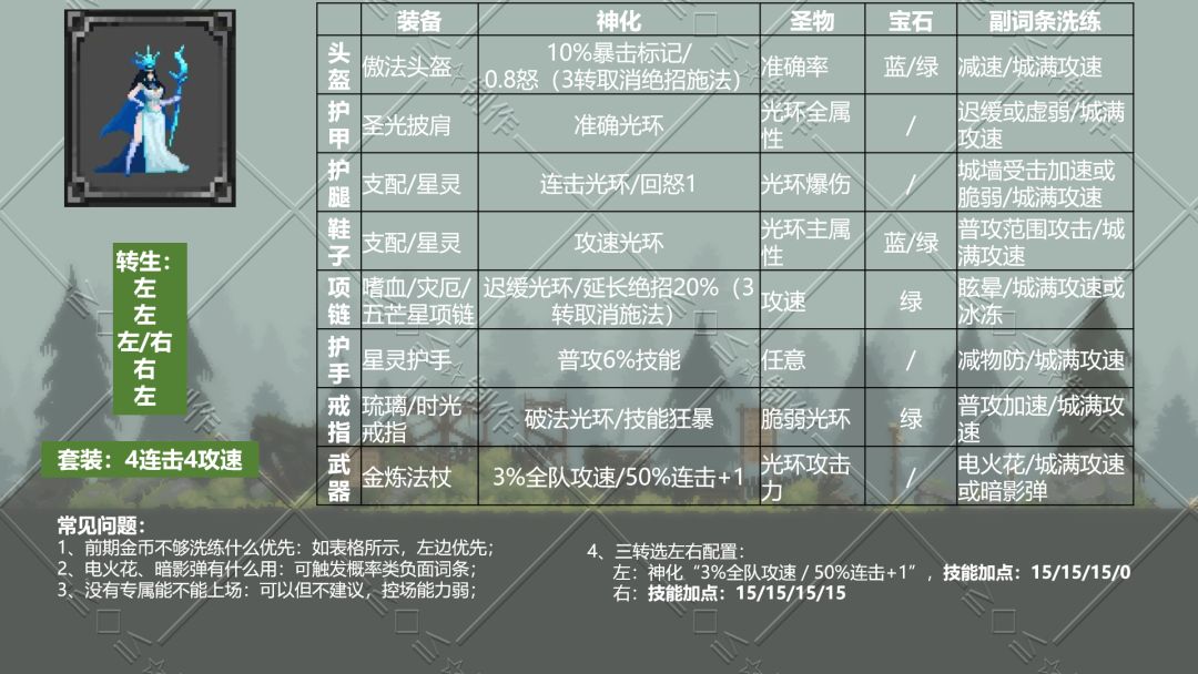 不朽级装备找图表装备的上位不朽即可。神化配置为作者当前使用的常用配置,仅供参考!!!