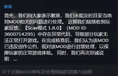 更让玩家愤怒的是,官方初期试图“冷处理”事件,甚至被曝出“安抚作者、指责举报玩家”的聊天记录导致Steam页面在短期内涌入大量差评。在舆论压力下,官方于12月15日、12月22日连续发布公告最终明确对恶意MOD及作者实施永久封禁并升级监管机制 ![[TapTap表情|TapFamilyxdoro2_粉狗发射]](https://img.tapimg.com/market/images/934f58613a089b2e214eb0e0638bbbad.gif)