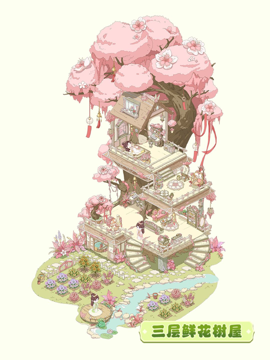 A. 樱花树屋🌺:住在树上,伸手就能接住春天;