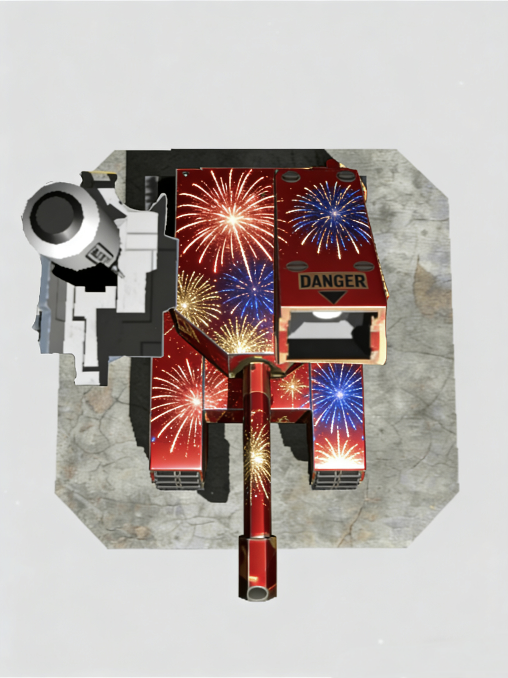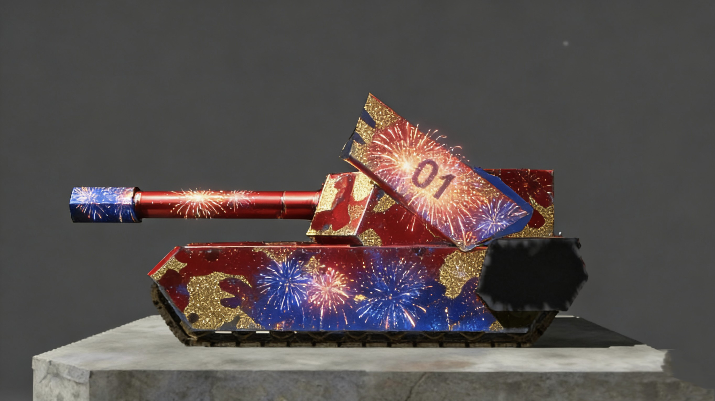 介绍:春节烟花自行火炮!它虽在移动与转向速度上稍逊一筹,但火力玩法堪称惊艳:右侧炮管能迸发三连发烟花榴弹,左侧搭载烟花导弹发射器,主炮还可发射经典自行榴弹炮。绚烂烟花火力与实战打击力结合,是烟火秀与战术输出的完美融合体!