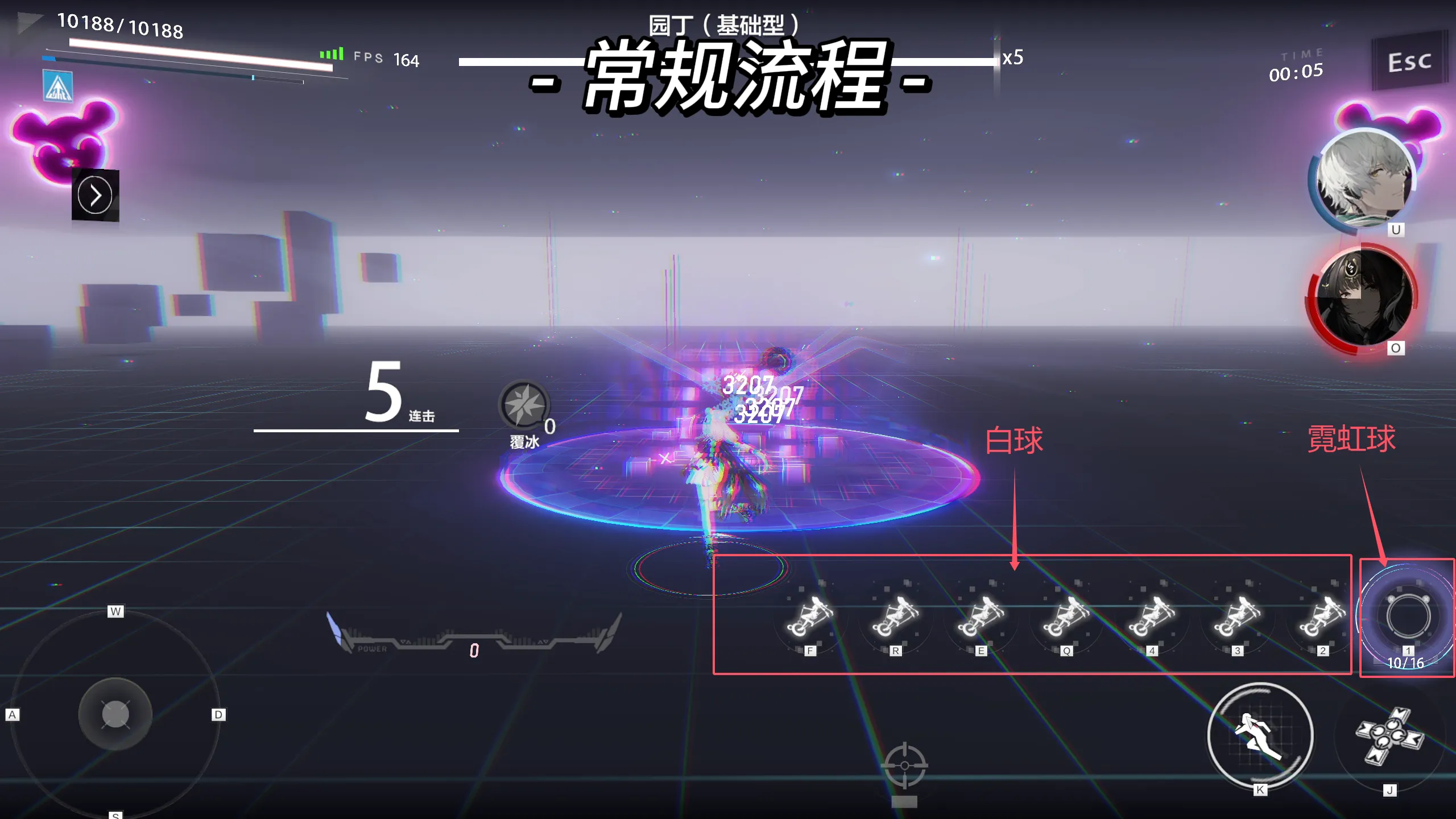 开启一段大后的主要目标就是打出三种颜色不同的霓虹球,每次使用霓虹球都会记录霓虹球的颜色,并扣除1/3的能量,能量消耗完毕时自动释放二段大。