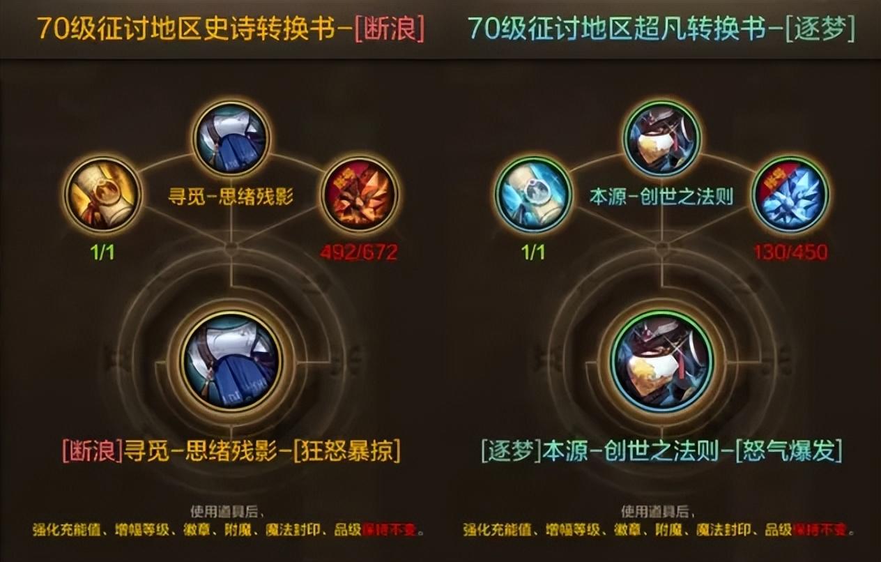 另一个是用材料升级现有的“70级史诗”,比如团本商店就有1个征讨史诗升级书和1个征讨超凡升级书。