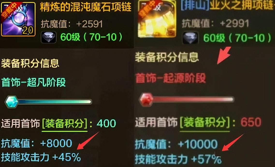 当首饰套装达到650分后,即可触发“起源阶段”:+10000抗魔值,+57%技能攻击力!