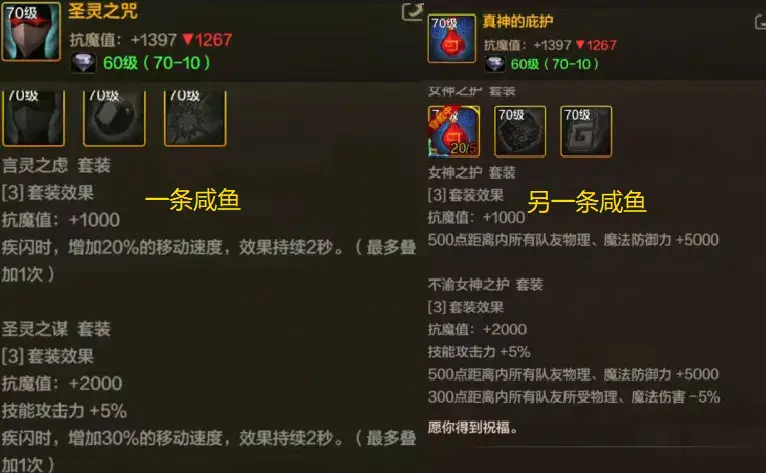 这2套装备的总体提升基本垫底,不过值得一提的是,这2套通用也可以用于散搭,而且刚好可以互相配对了。