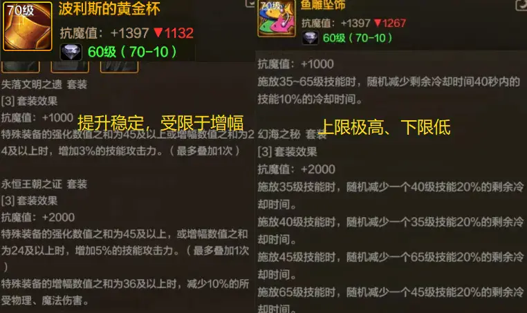 “黄金杯”依旧是作为全套装的衡量标准,主要受影响于玩家的增幅等级,不过即便是不增幅,黄金杯的实际提升率还是挺不错的;
