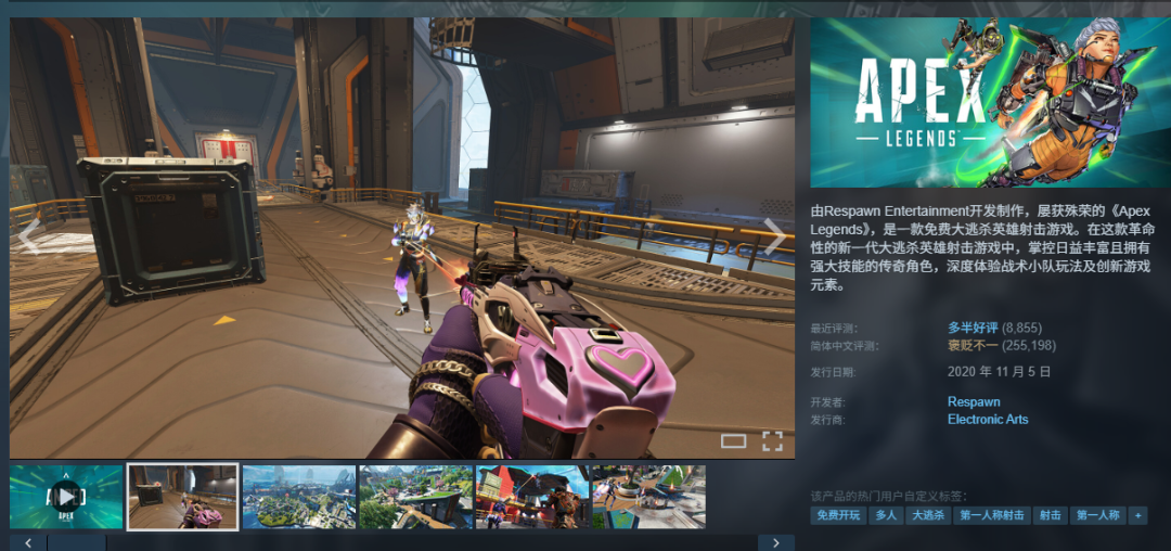 2019年2月《Apex英雄》(Apex Legends) 在无宣发的情况下横空出世。凭借优秀的射击手感和创新的“标记系统”,迅速成为全球最火爆的大逃杀游戏之一,为EA带来了数十亿美元的收入,且至今依然是全球最赚钱的FPS游戏之一。