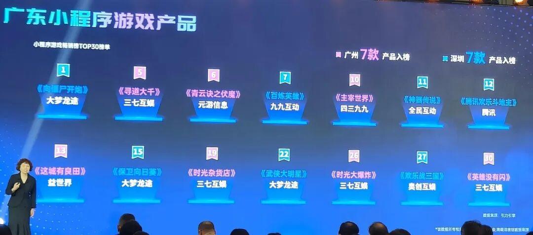 按单款小程序游戏来看,广州和深圳分别有7款小程序游戏,入围国内小程序游戏畅销榜TOP 30(数据来源为引力引擎),包括《向僵尸开炮》《寻道大千》《英雄没有闪》《百炼英雄》等。