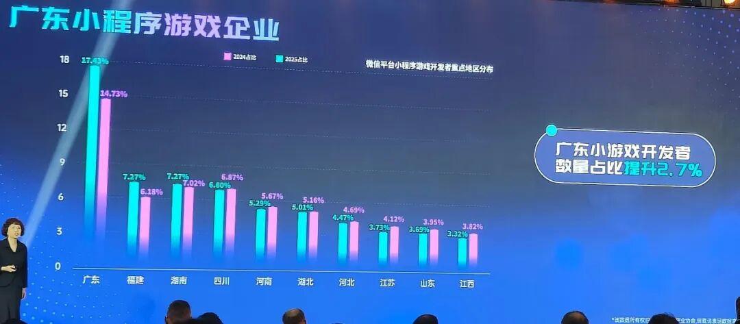 游戏公司方面,广东游戏上市企业为27家,包括港股13家、A股9家、美股2家和新三板3家,上市游戏企业数量位列全国第一;广州小程序游戏企业数量为32家,深圳为20家,分列全国TOP 2;广东小程序游戏开发者数量,占全国的17.43%,同比增长约2.7%,位列全国第一。