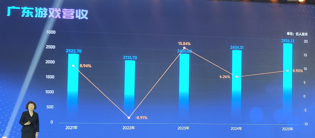 2025年,广东游戏市场营收为2836.13亿元(不含小程序游戏),同比增长约8.9%,收入增速超过全国水平(7.7%),同时,该营收占国内游戏市场营收规模的80.85%。