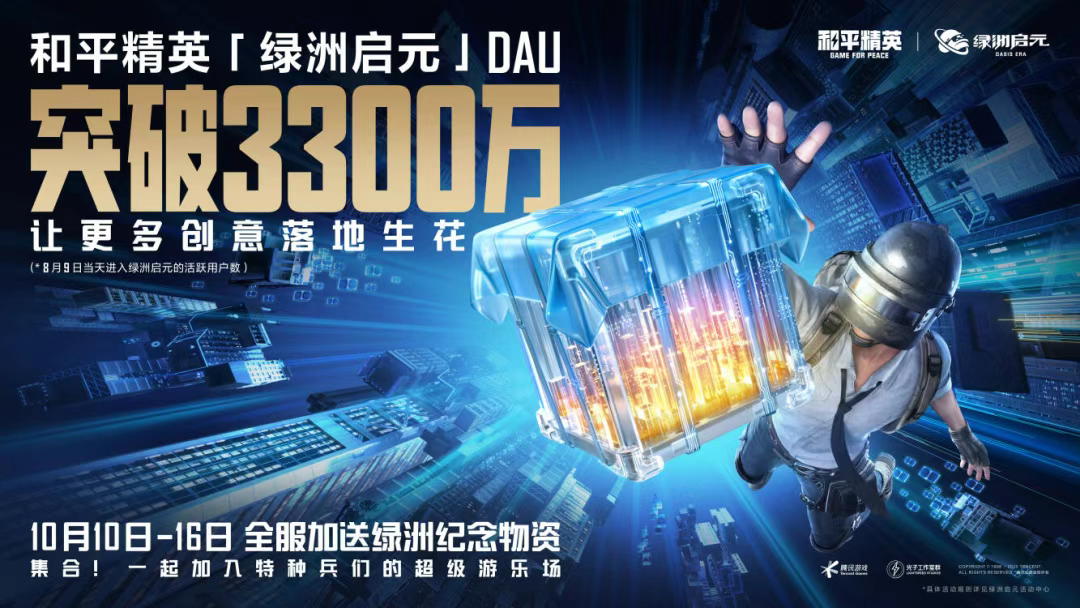 《和平精英》内的UGC平台「绿洲启元」,今年10月DAU已经突破3300万。