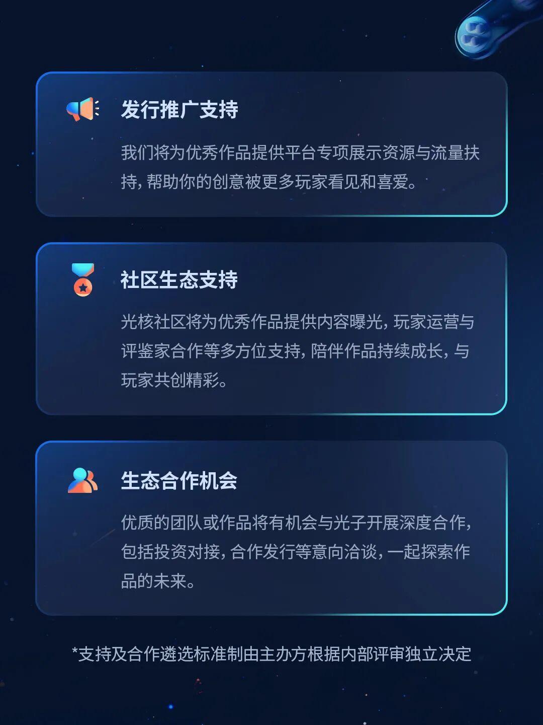 超200万元人民币总奖金池所提供的真金白银,只是获奖者收到的第一份激励。除此之外,获奖作品还有机会直接纳入光子生态合作体系,获得孵化、技术、发行、投资、宣发等资源支持。