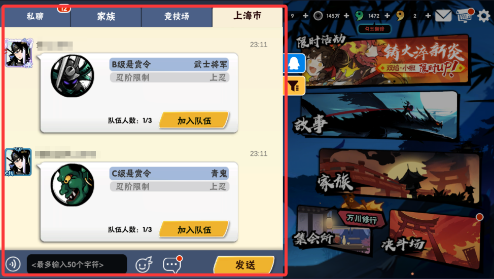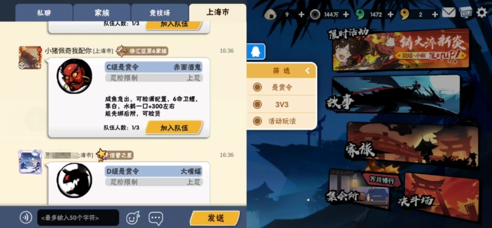 可以看到,其实绝大部分时间都只是给玩家作一个抢悬赏的功能用,当然其中也不乏家族招人、带ss+之类的信息。这些都是正常交流无可厚非,但确实有些骗局是需要注意。