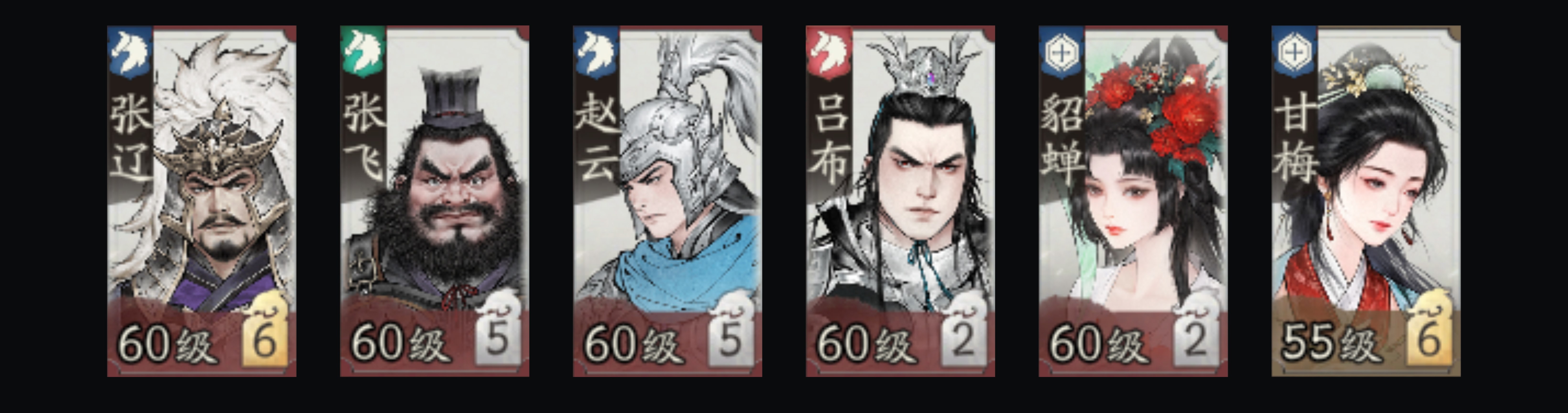 张辽、张飞、赵云、吕布、貂蝉、甘梅