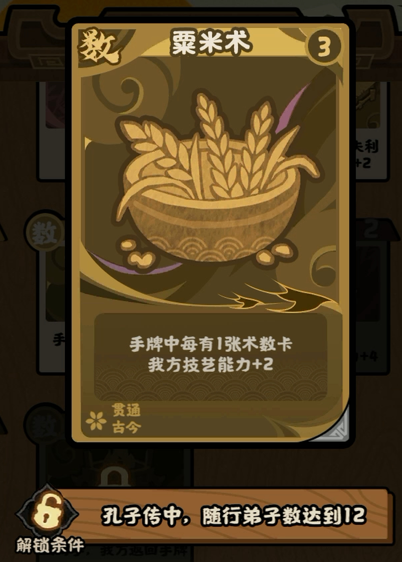 大部分卡牌我们都可以在达成《高山仰止》结局的过程中顺便完成,只有【粟米术】这个卡牌需要我们刷一下。我建议就在结束引导的时候存档,通过贤才传闻去招满12个弟子解锁【粟米术】之后再读档。