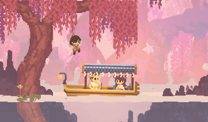 如之前所闻,当活泼的游戏原声响起,眼前便是樱花飘落的溪谷。在这里,你可以稍作驻足,看着三三两两的NPC结伴坐在小船上悠然划过水面,享受一段宁静的间隙。