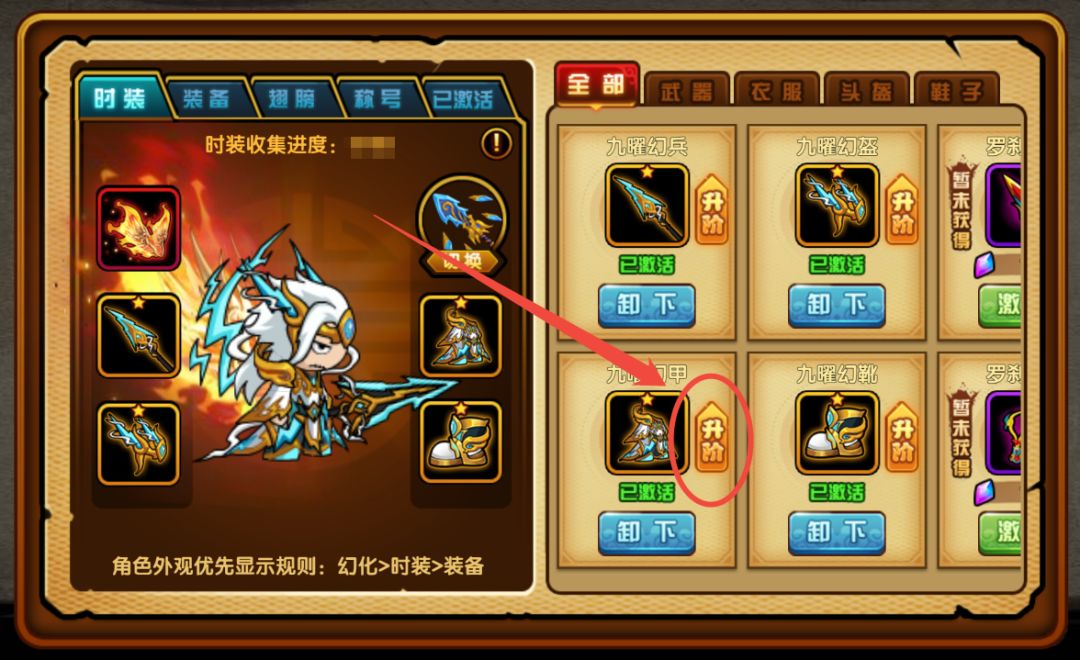 5、角色外观展示优先显示规则为:幻化系统>时装>装备。