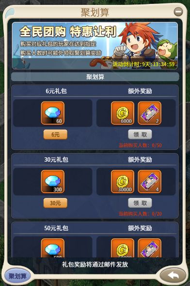 团购特惠,购买礼包人数到达一定数量时可领取额外奖励