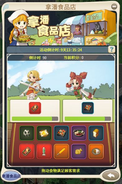 游戏开始后,随机出现顾客,顾客会在气泡中以料理图标的形式展示自己的需求,将下方的料理拖进气泡中对应的料理图标,符合顾客需求即可获得积分