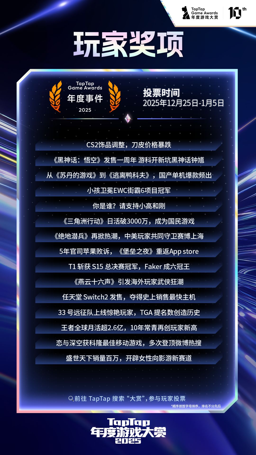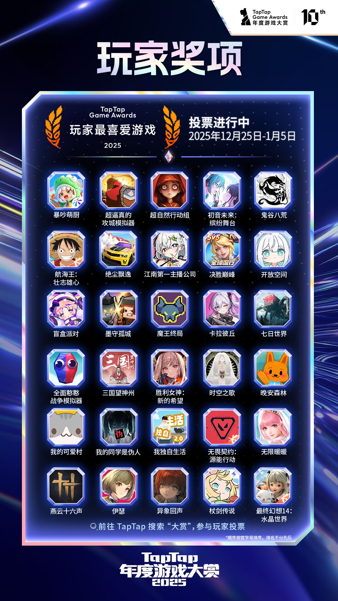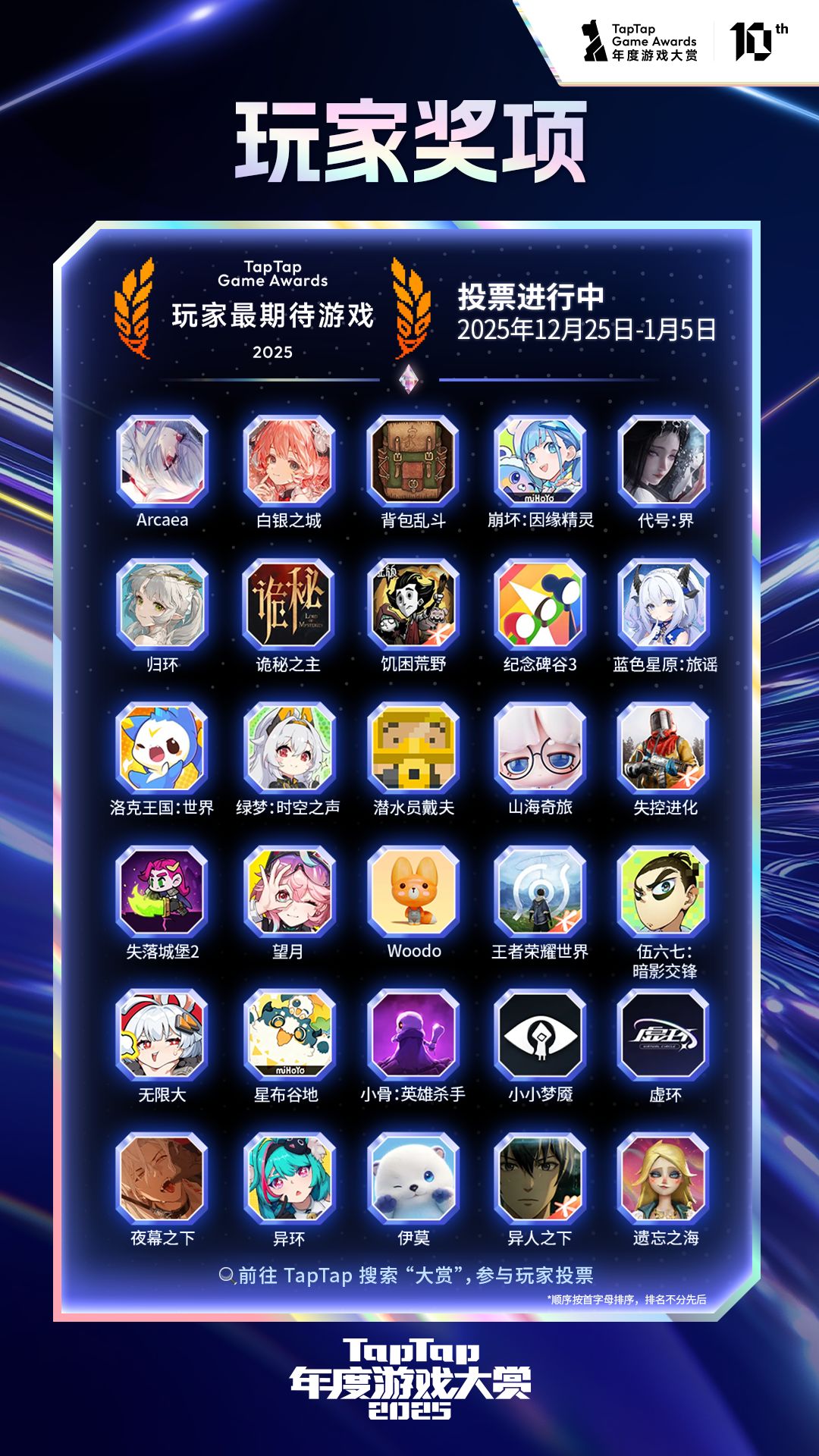 2025TapTap年度游戏大赏 玩家奖项投票正式开启!