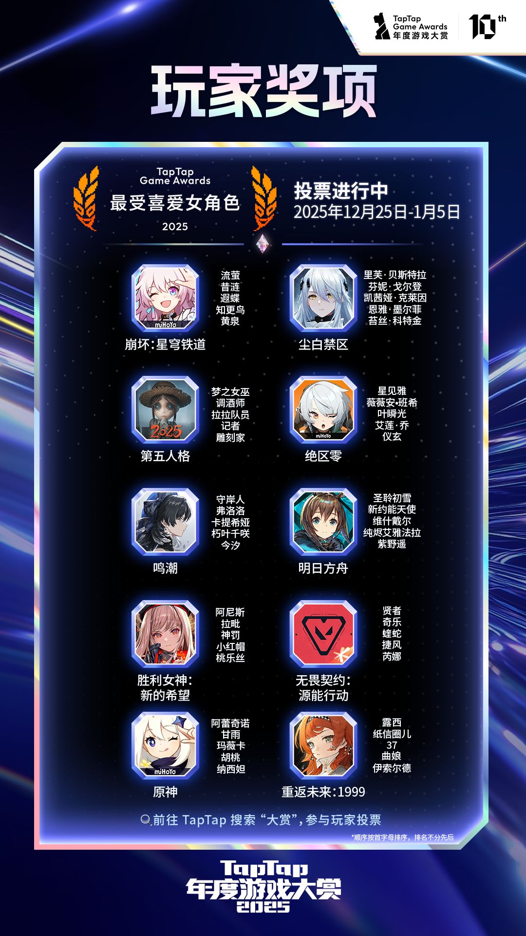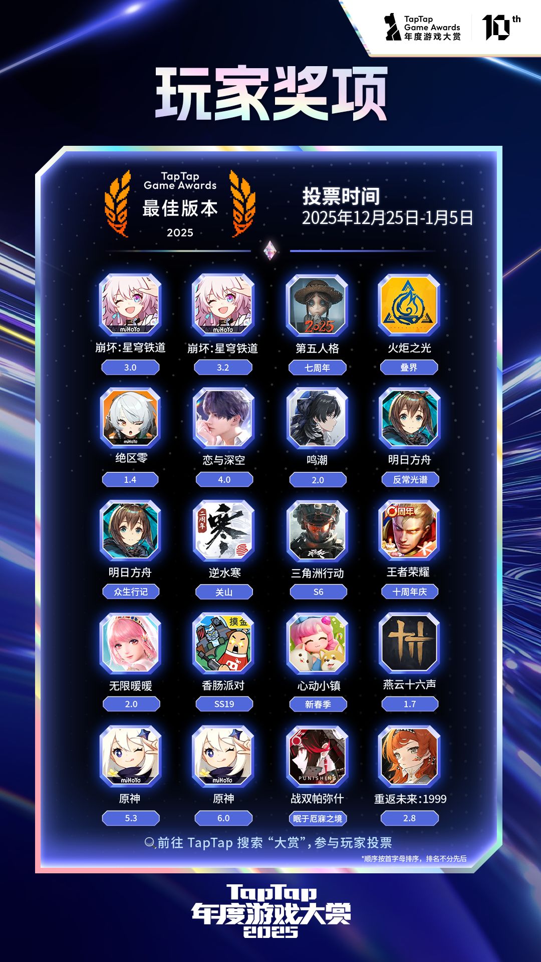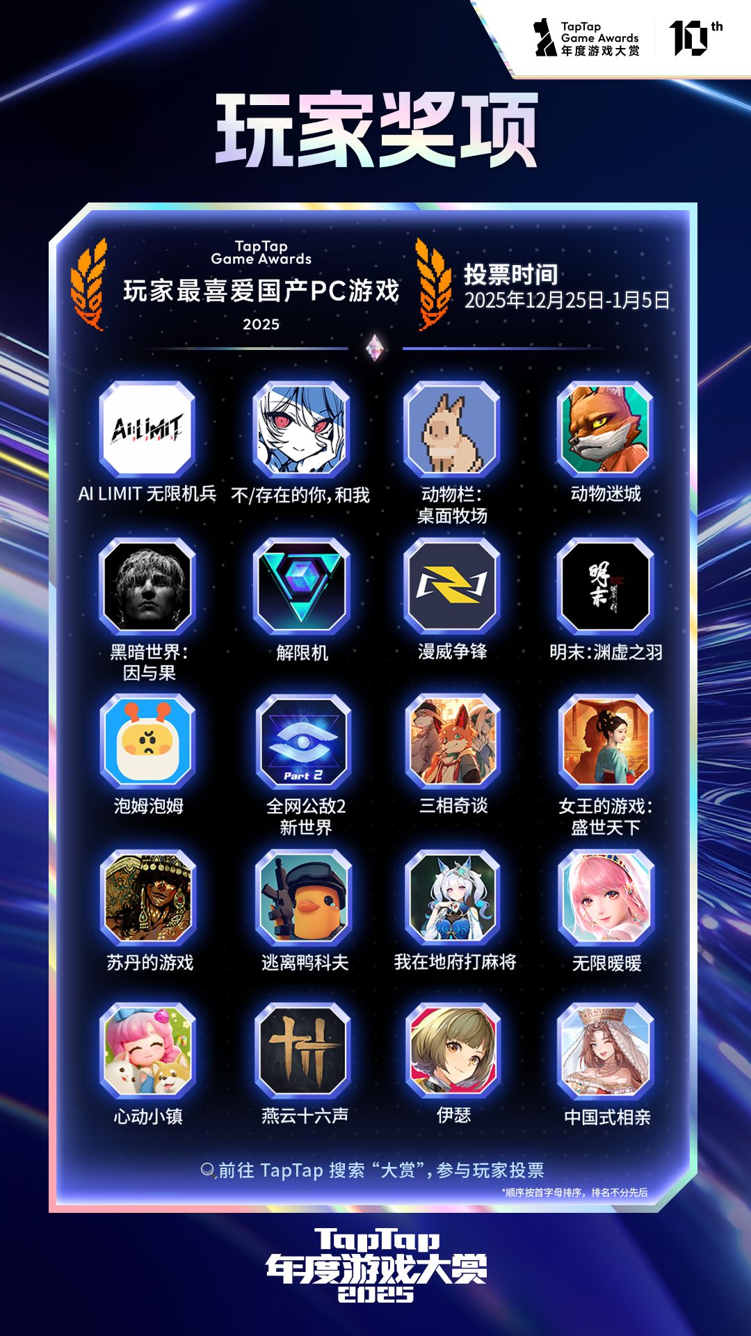 2025TapTap年度游戏大赏 玩家奖项投票正式开启!
