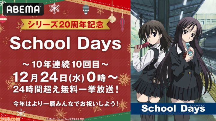 今年ABEMA也会免费播出《School Days》全集,这是第几年了