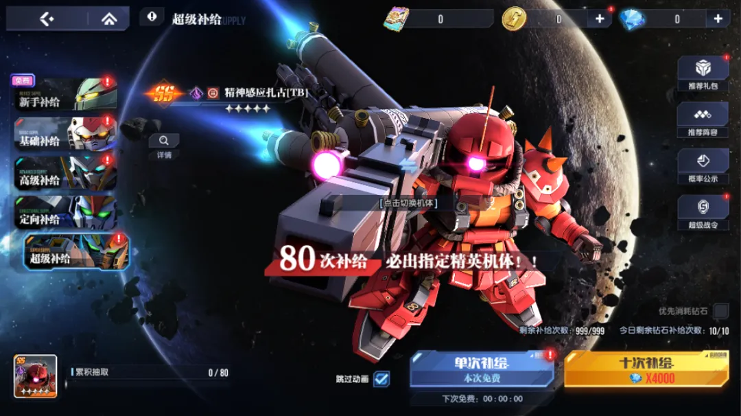 ※服务器开服时间>43天才可在超级机体补给池指定「精神感应扎古[TB]」为抽取对象