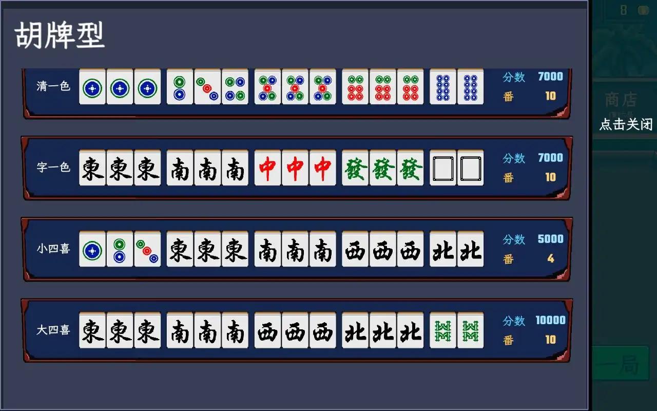 会打麻将的人一定都很熟悉,碰,吃,对子这种组合,但对楼主这种不会打麻将的人来说则是一头问号不过正如制作组说的,不会打麻将的人也可以玩,也可以轻松上手那确实,玩了几分钟就熟悉了,至少游戏的规则都能够轻松明白