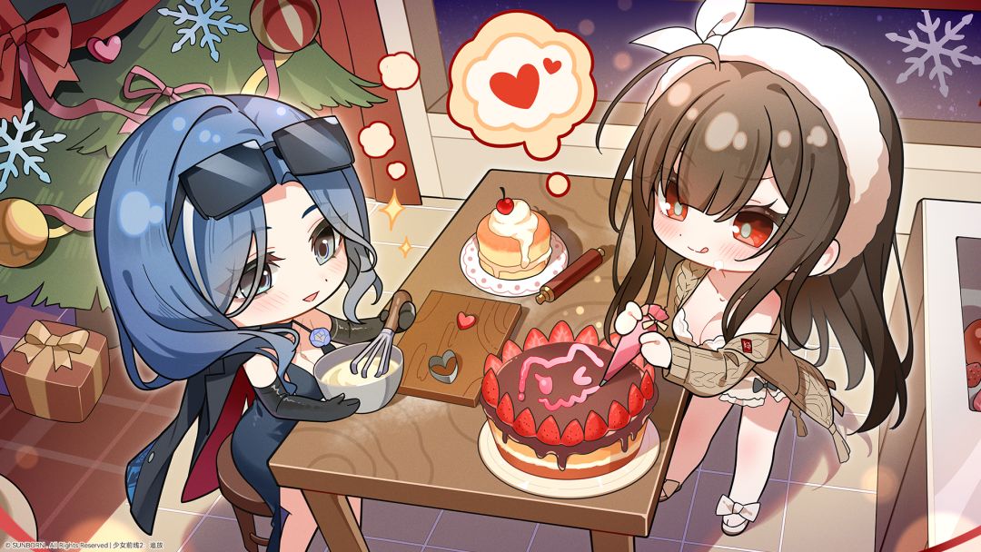 装点雪花的圣诞树和温馨的窗花让休息室焕然一新,海伦和罗蕾莱正在窗前准备饱含心意的节日蛋糕,甜蜜的奶油和浓醇的巧克力,艾莫号内萦绕着温暖的气息。