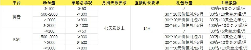 通过评论区/公众号私信参考以下形式填写招募令,通过后即可开播,在对应平台开播后达到场观可申请专属密令赠予直播间粉丝!(未达到场观的主播不能申请专属密令礼包,但达到开播时间时长仍可获得主播月度激励)
