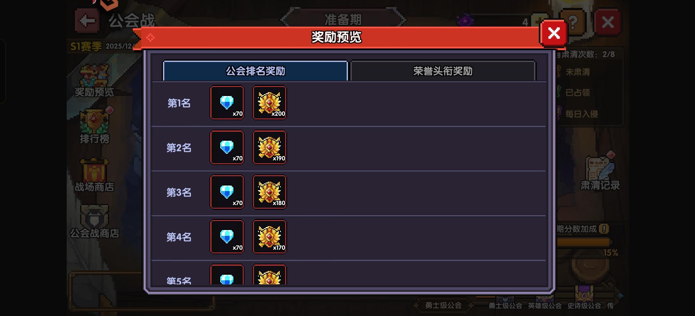 新公会战排名奖励第一名【70钻+200公会功勋】