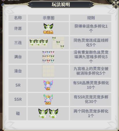 该活动玩法相对比较简单,有点类似连连看这种类型的小游戏,达成以下条件之后可以多孵化灵蛋然后获取更多的积分进行兑换奖励。