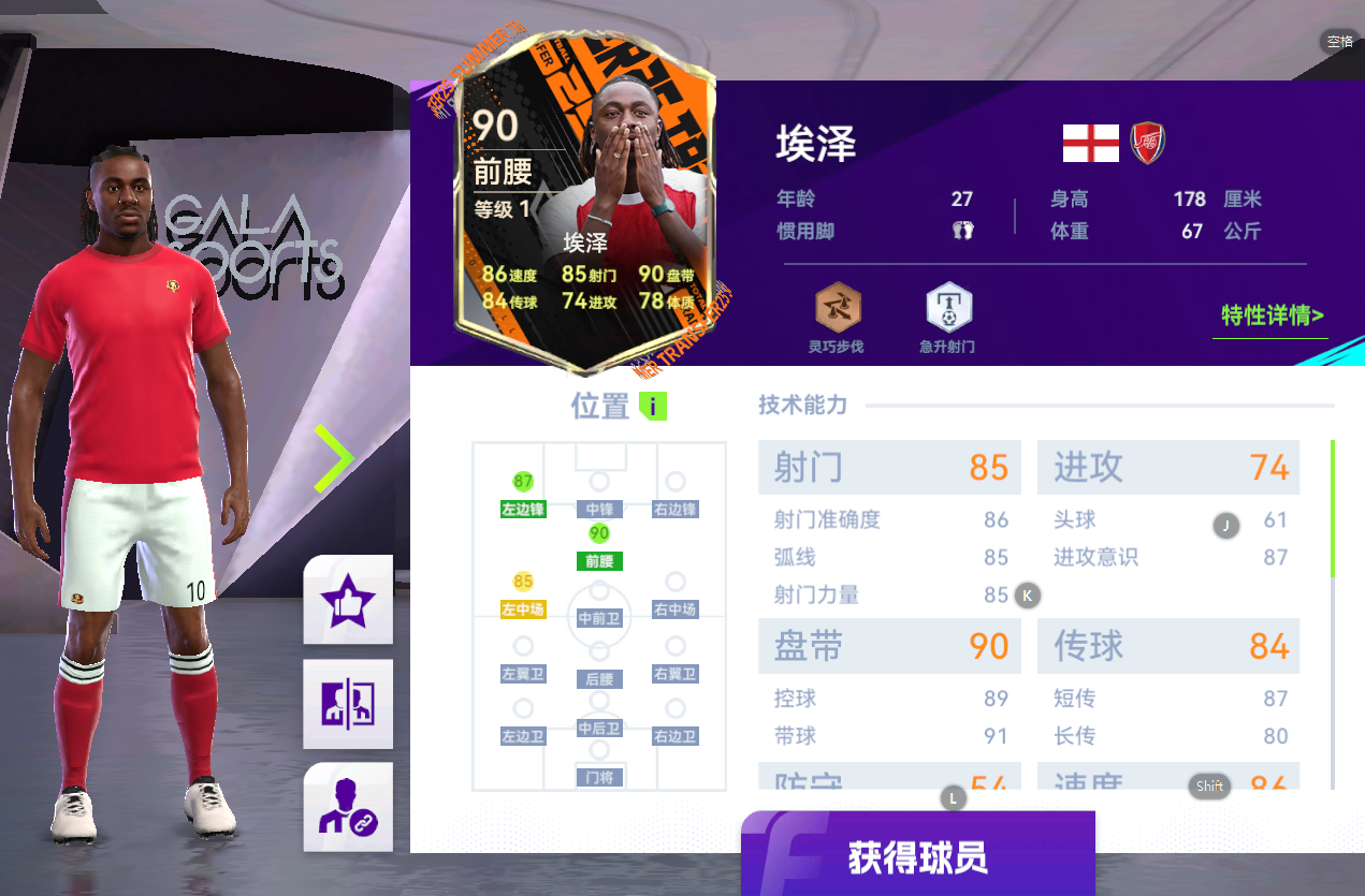 埃泽特点跟帕小将类似,进攻属性不高,防守几乎白给,但是帕小将主要的终结方式还是通过弧线球转进球门,而埃泽更适合直接大力射门,毕竟带有急升射门特性,让对方守门员无计可施!