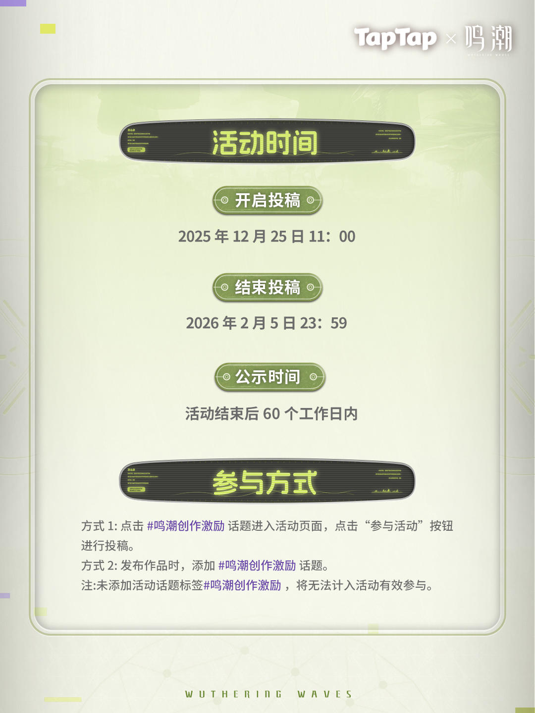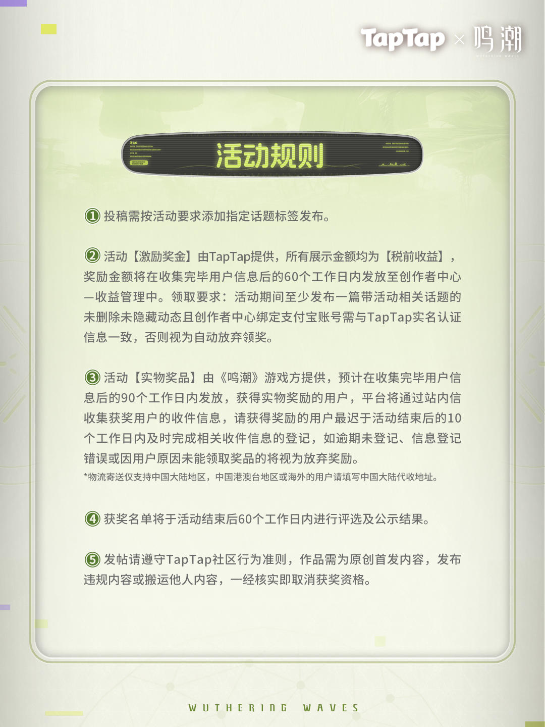 注:未添加活动话题标签#鸣潮创作激励,将无法计入活动有效参与。