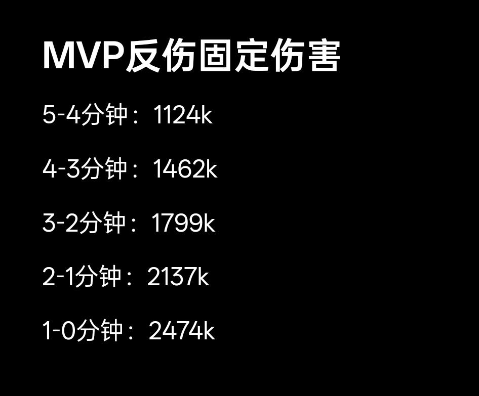 那当然是MVP反伤固定的原因,生命1124w和1462w不太现实,太难压了,1799w这个档位还能拼一拼,而压血就是为了叠金耀五件套,1799w血的10%,也就是179.9w,刚好是3-2分钟那一档