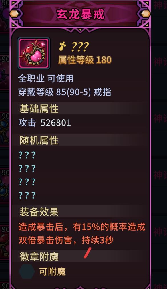 现在新出的玄龙暴戒(我还没有),将是大提升,虽然爆伤稀释严重,但是架不住给的多呀,几千上万的爆伤,龙海有爆伤翻倍戒指提升应该比另外两个职业高得多(对比自己的提升)。
