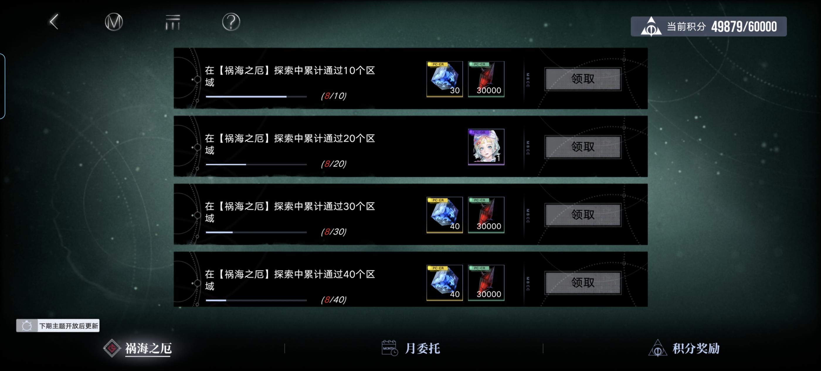 暗域前期我自己在打72,下半年几期基本都是米拉帮忙打的,深井每期都打了,活动基本也都做了。