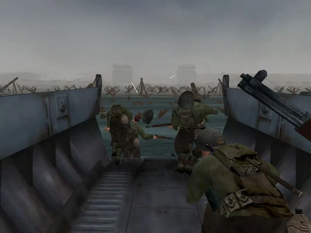 文斯手上的《荣誉勋章》,和斯皮尔伯格的风格完全不同。除了原版游戏里的潜行桥段,游戏里多了许多堪称电影大片一般的桥段:你扮演诺曼底登陆时的美国其中一名美国大兵,在滩头射杀德国士兵,艰难前行,炮火和枪声在你耳边轰鸣,身边的友军一个个被炸飞,甚至比观看电影还要更沉浸更紧张,这是许多人第一次感受到电影化叙事游戏的魅力。