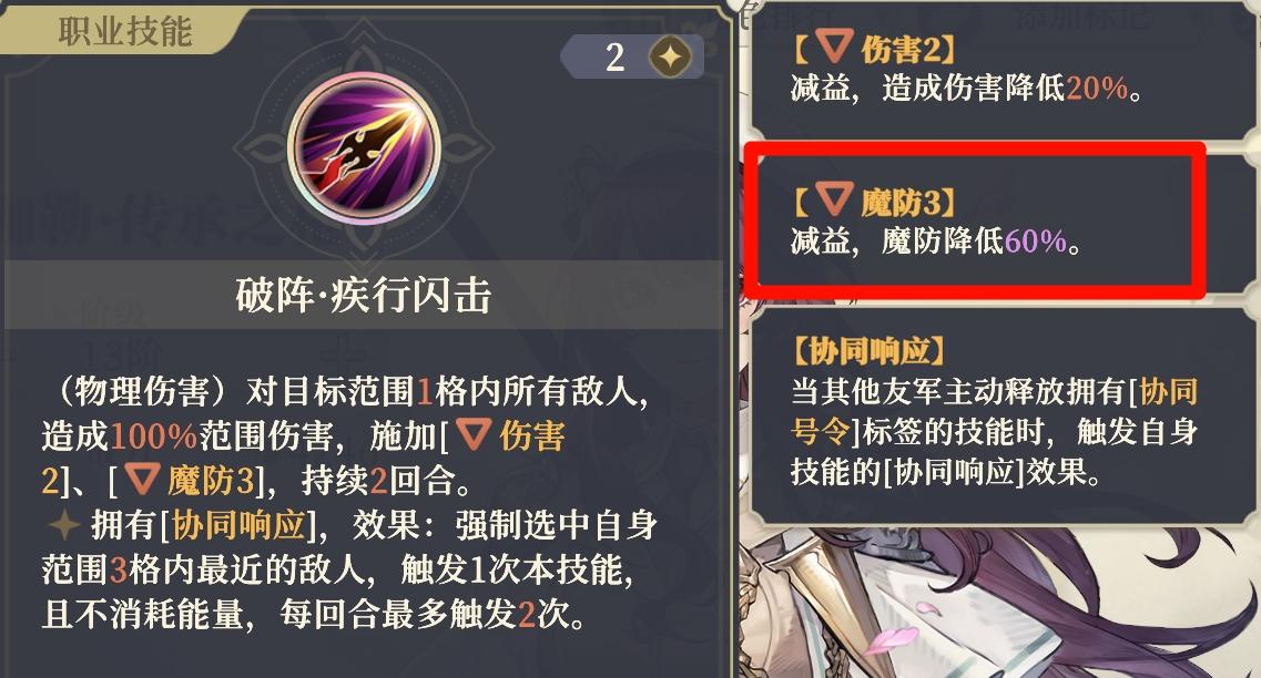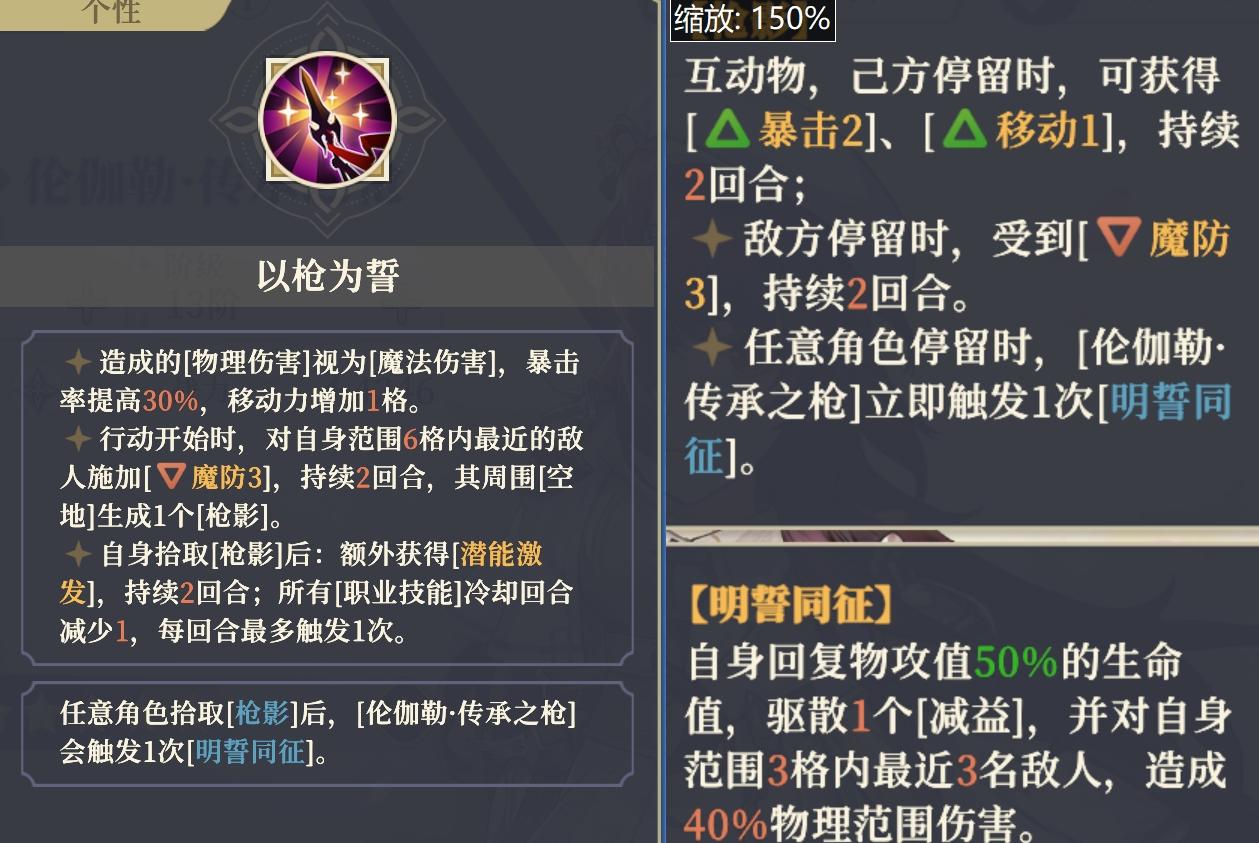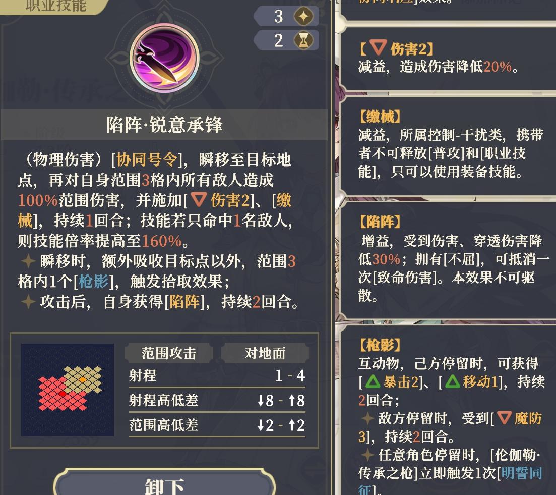 超好用的枪影的交互:自己捡能回血、减技能CD还能获潜能激发(攻防暴涨+免疫属性降低);队友捡能拿暴击2和移动1的buff,不管是搭配魔法C还是物理C都适配。大招“锐意承锋”还能主动吸枪影,触发额外AOE伤害的同时,给自己叠陷阵减伤和不屈,进能突脸清杂,退能保命拉扯,这种“自给自足”的机制,在任何阵容里都能找到位置。