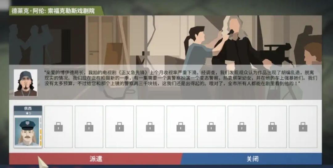 2. 测试成功且购买了《科里奥兰序曲》在第9天下班时,能力最低的警员/探员会辞职(推荐选择)3. 测试失败(选择过多第三个选项)虽然没有警员辞职,但市政府会派遣大量低效任务,会导致警力资源紧张且影响市政府好感度