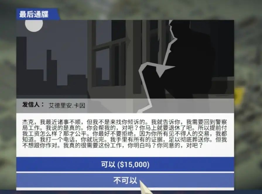 这里我收到了黑帮警告,表明与黑帮关系即将恶化。如忽视前期黑帮任务,杰克此时可能已经End.