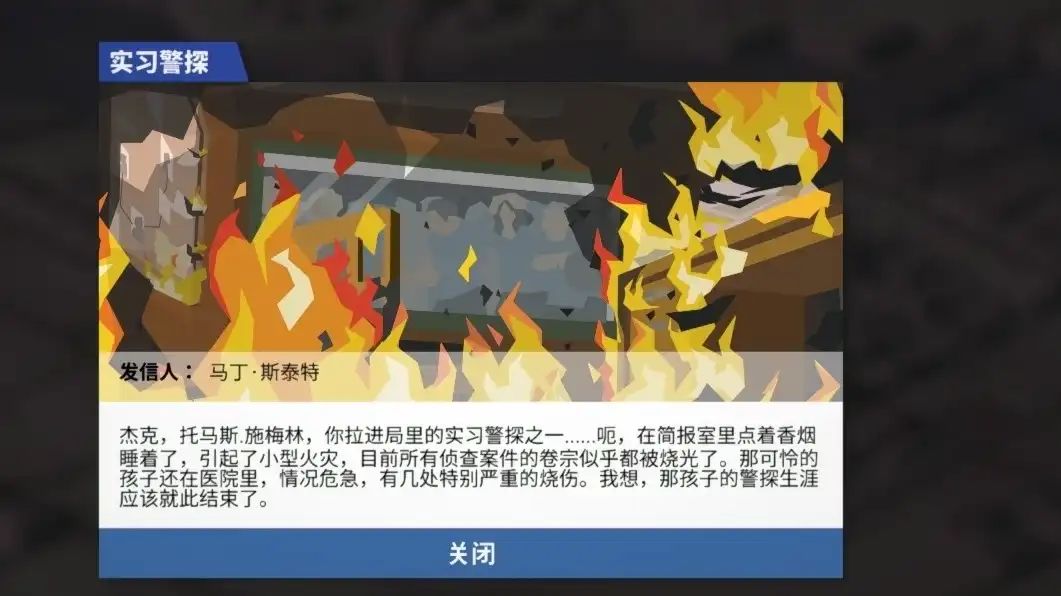 火灾事件(可能触发):如实习探员参与调查,所有线索将丢失。不管这个事件触不触发,两个实习探员都会辞职走人,留2个探员空位给你。