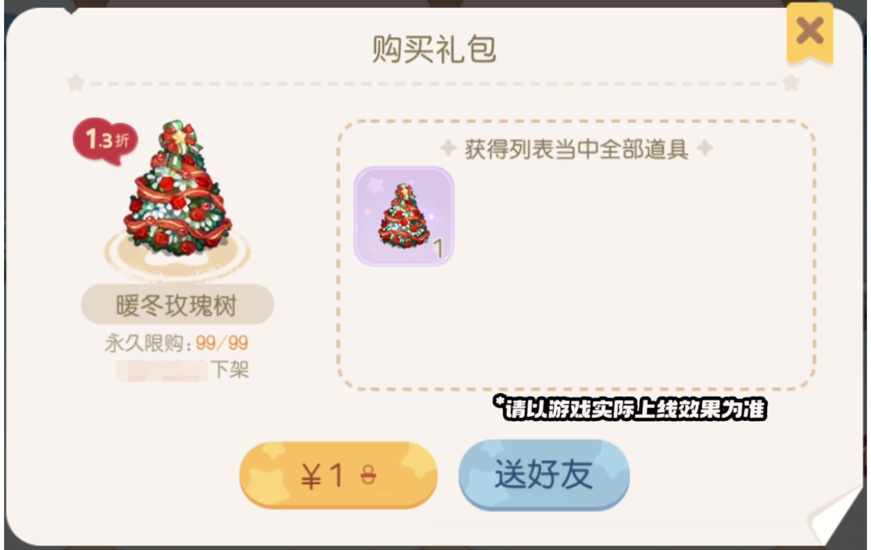 温馨提示:小奥比们也可以选择购买「暖冬玫瑰树x8」礼包,即可一键获得8个「暖冬玫瑰树」家具哦!