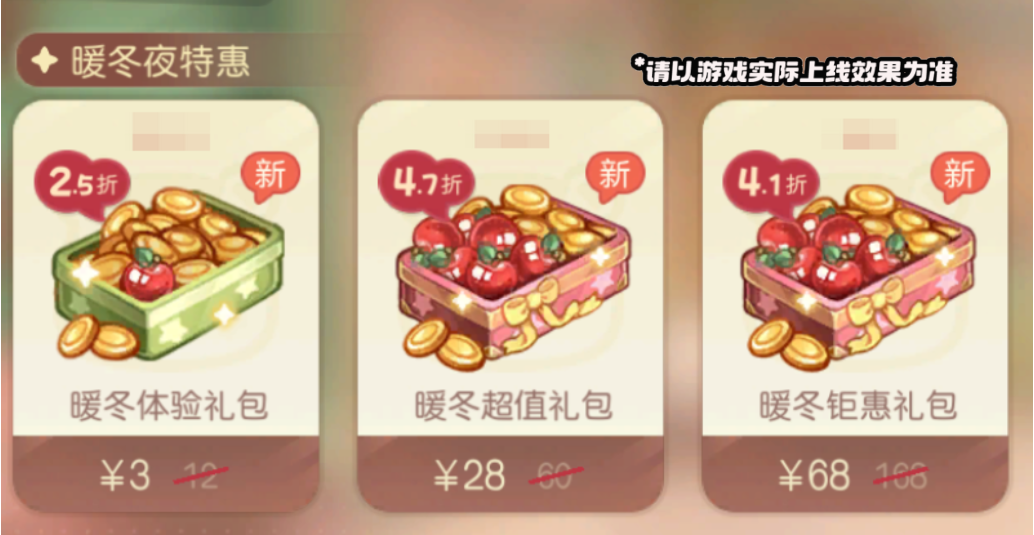 活动介绍:「奥柏百货」上架全新限时礼包——「暖冬夜特惠」系列折扣礼包,限时折扣优惠商品不可错过!