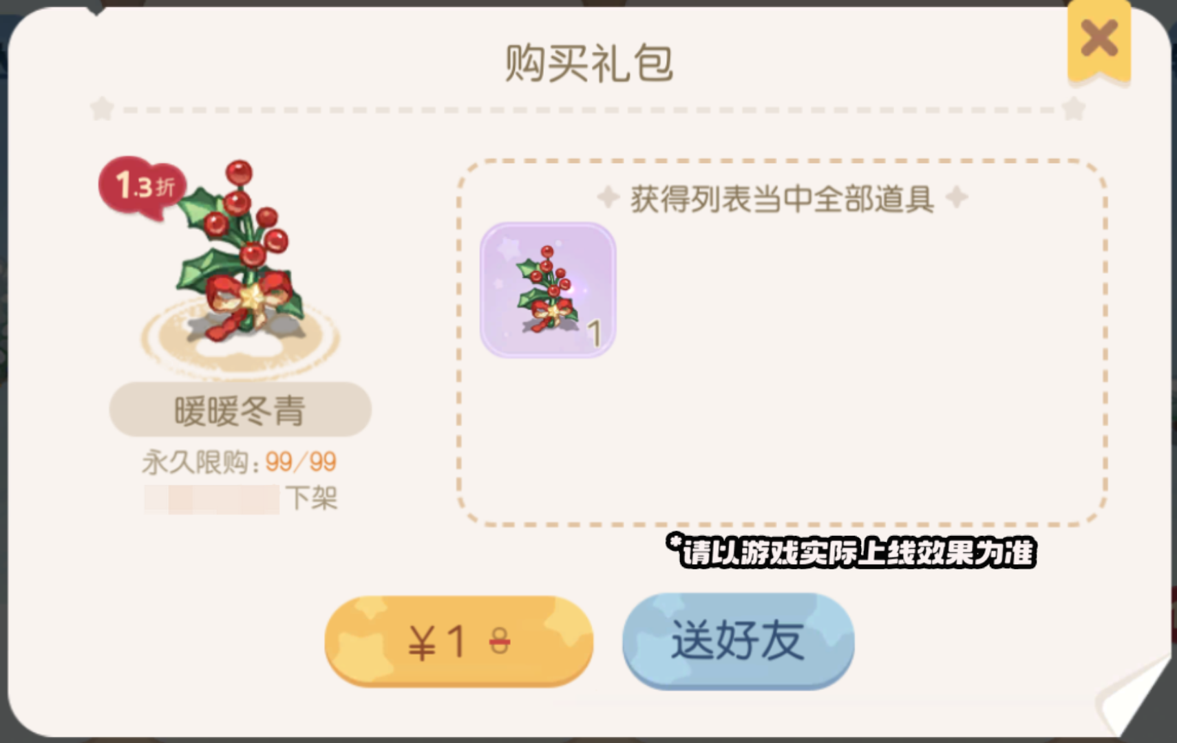 温馨提示:小奥比们也可以选择购买「暖暖冬青x8」礼包,即可一键获得8个「暖暖冬青」家具哦!