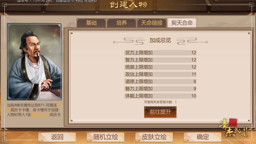 通过激活并蕴养命牌的方式,提升自建人物属性上限
