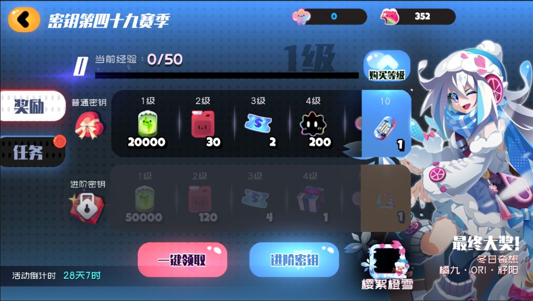 10级进阶密钥的奖励更换为——樱絮粉雪(头像框)