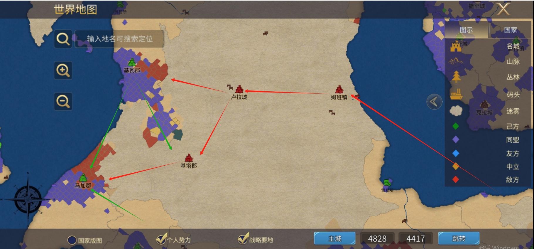 3. 马加郡隔海对岸欧落本土的纳达郡,尽快留附属,以防出现马加郡丢失的最坏情况,能够第一时间拿掉纳达郡,守护欧落本土。