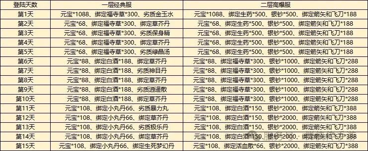 基金仍然是2088元宝购买,加量不加价!由于篇幅过多,内容暂时以表格的形式展示。侠士可在游戏内进行查看。