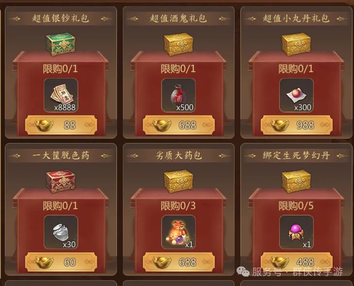 注:以上物品均为绑定,武功进阶卷仅可在二层一阶普通武功进阶时,替代一次钱币消耗
