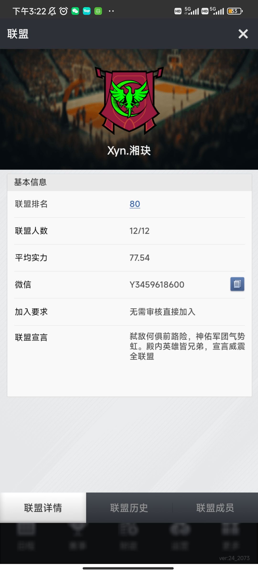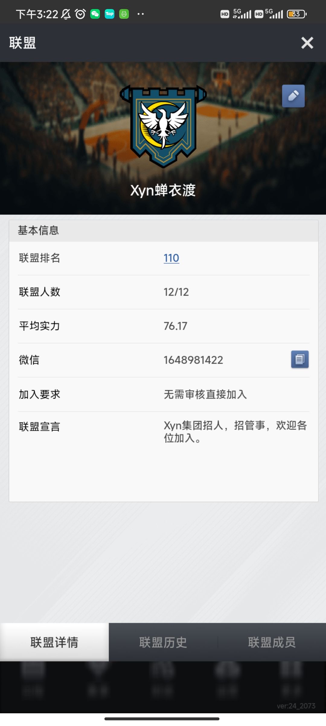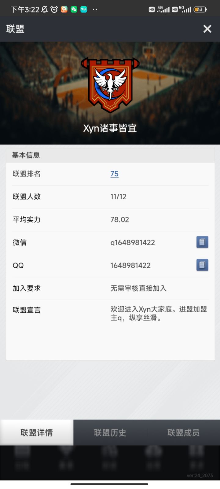 在大家伙的共同努力下,Xyn分盟也达到了16个,其中满勤盟12个。盟内兄弟138人,账号172个。